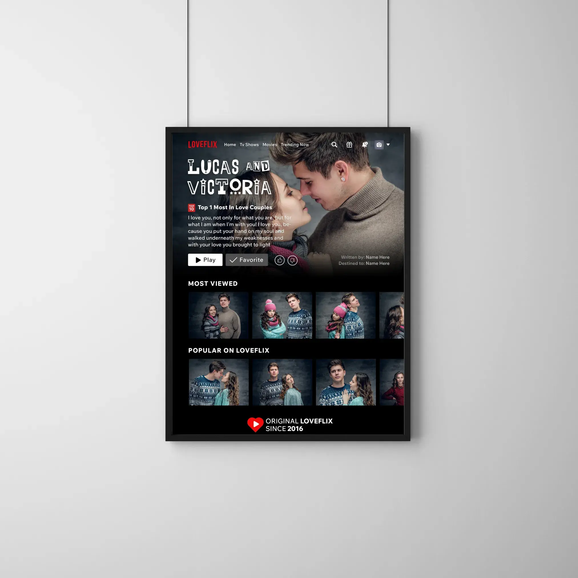 LOVEFLIX Premium Frame – Personalized Netflix Style Love Story Dashboard