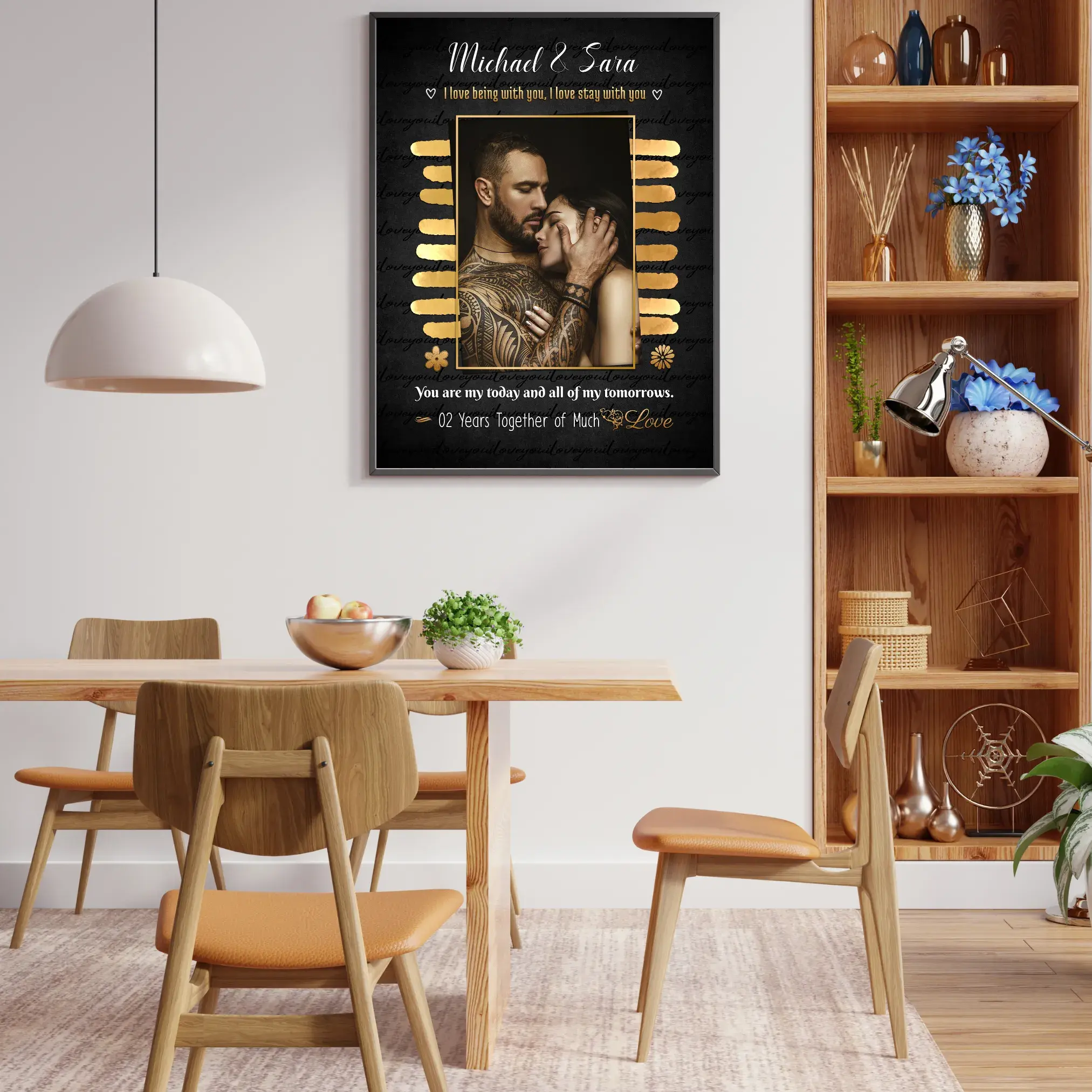 This frame is created for couples who want to celebrate their bond in a luxurious and meaningful way. With personalized names like “Michael & Sara,” a romantic message, and a premium design, it becomes more than just décor — it becomes a reflection of your relationship.