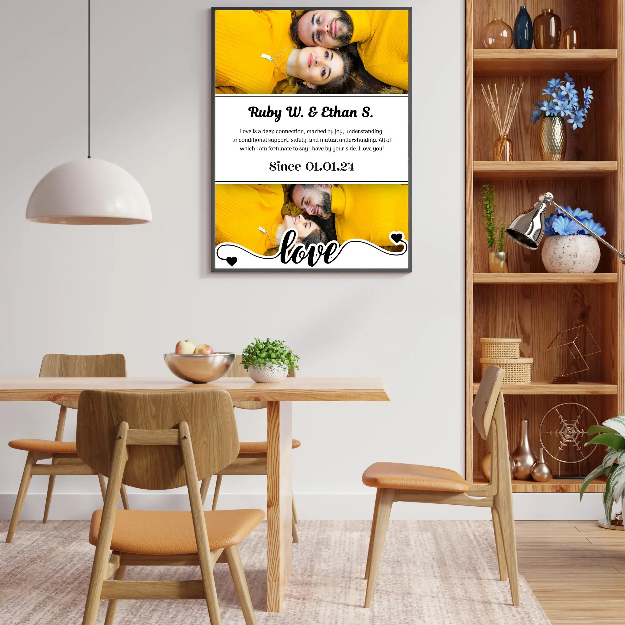 The Personalized Couple Love Frame is a modern and elegant way to showcase your relationship with style and emotion. Designed with bold visuals and a clean layout, this frame highlights your most beautiful memories along with a heartfelt message and your special date.