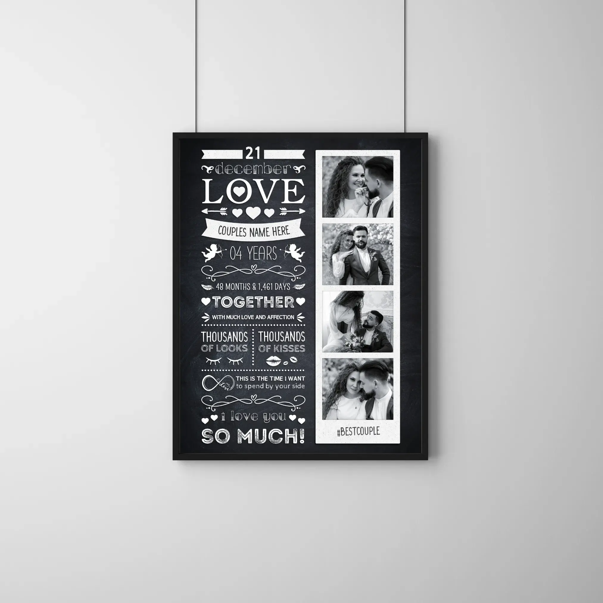 The Personalized Couple Timeline Frame is a beautifully designed collage that captures your relationship story in a creative and meaningful way. With a stylish chalkboard-inspired background and elegant typography, this frame showcases your special moments along with your most cherished memories.