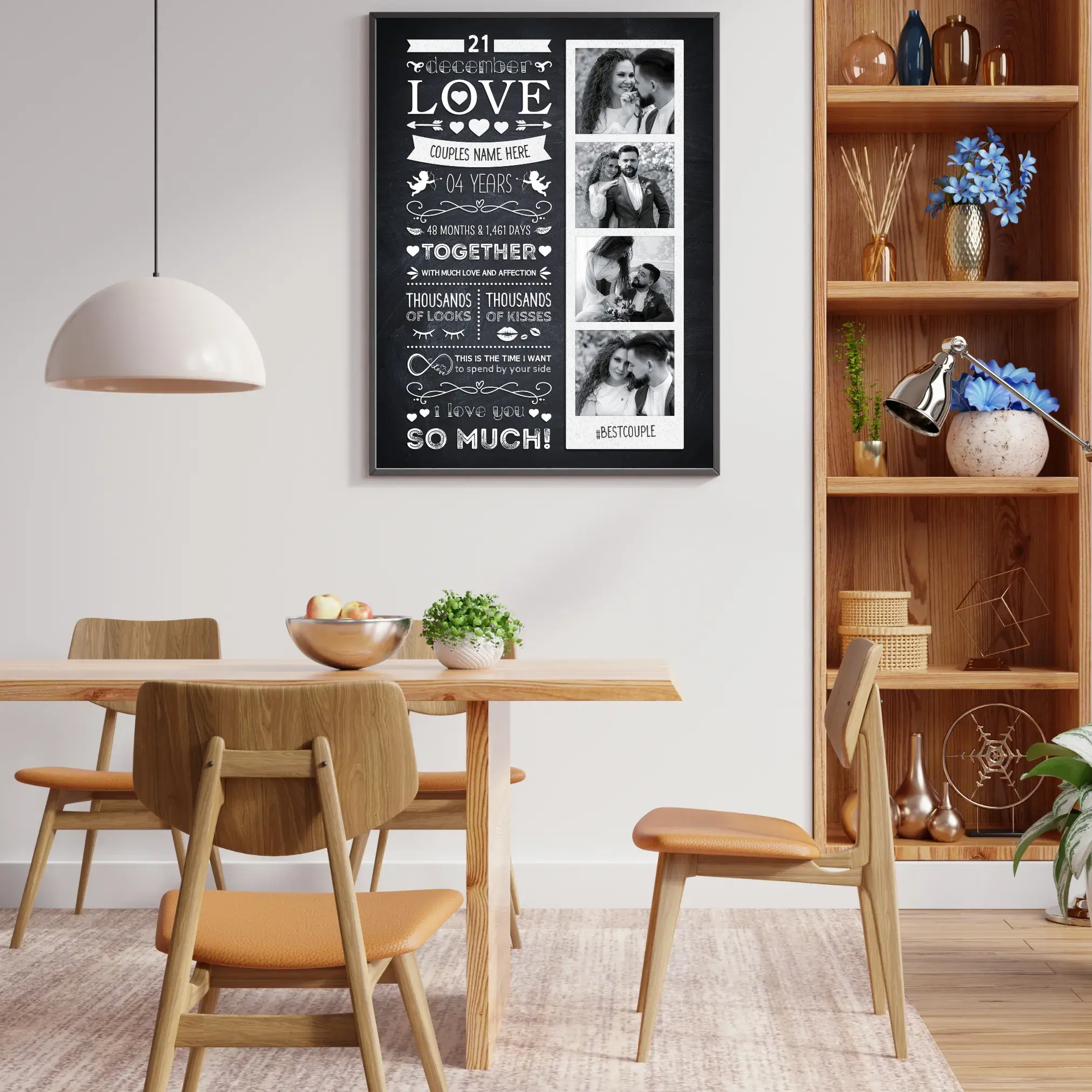 From your anniversary date to the number of years, months, and days you’ve spent together — every detail is thoughtfully presented to reflect your unique bond. The frame also includes multiple photo slots, allowing you to display your favorite couple moments in one stunning layout.